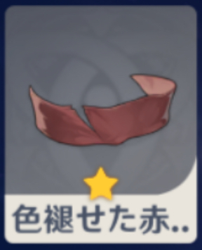 | 30LV突破 | 最勝のアメシスト砕屑×1 サウマラタ蓮×3 色褪せた赤い絹×3 | 雷元素ボスの報酬 スメールの特産品 エルマイト旅団 ![]() |